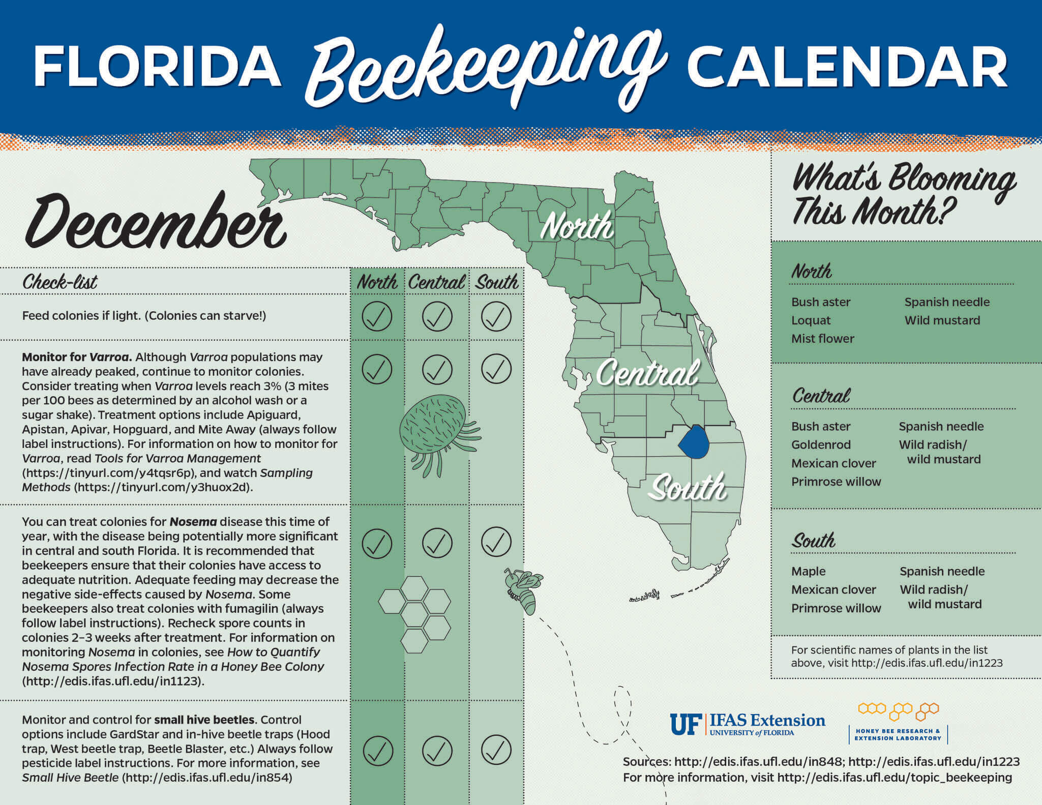 Winter is a period of preparation for beekeepers. With the citrus flow right around the corner, it can be a scramble to find good queens in time. To reduce stress, here is the most current list of registered queen breeders in Florida, along with their contact information: